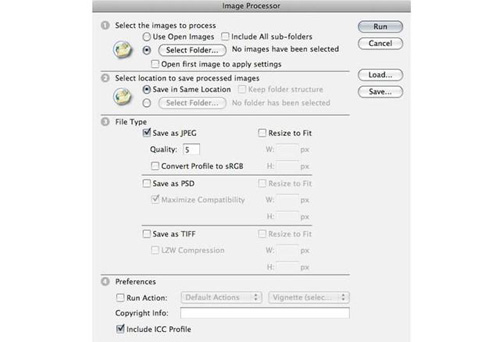 使用圖像處理器就像使用批量操作面板一樣,使用圖像處理器來(lái)打開(kāi)文件夾的所有圖像,調(diào)整大小之后并將其保存到相應(yīng)位置。這一操作僅需點(diǎn)擊幾下鼠標(biāo)就可以完成,利于節(jié)約大量時(shí)間。