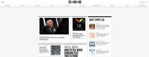 突出品牌的方式有很多,內(nèi)容是其中很重要的部分,同時(shí)視覺和體驗(yàn)也不容忽略。比如在技術(shù)類數(shù)字雜志中極為出名的 Wired ,也就是《連線》雜志。獨(dú)樹一幟的LOGO,黑白分明的配色融入整個(gè)數(shù)字雜志的網(wǎng)站設(shè)計(jì),和LOGO以及品牌本身遙相呼應(yīng)。