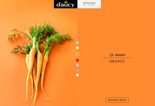 D’Aucy 在進(jìn)行分屏設(shè)計(jì)的時(shí)候,選擇了更加微妙的策略。左側(cè)僅有圖片,搭配著有紋理的背景;右側(cè)的背景選擇了近似的色彩卻沒(méi)有加上紋理,僅有文本標(biāo)題。兩者在保持近似一致的視覺(jué)設(shè)計(jì)的同時(shí),又巧妙地呈現(xiàn)出差異性。