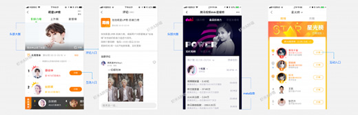 強化露出功能入口,增加評論、霸屏功能,這些在明星榜單的設計中尤為重要,因為榜單中的每條內(nèi)容不僅需要用戶點擊查看,更多的目的是為了引導用戶參與互動、應援、瀏覽,并且與后續(xù)業(yè)務線對接,從而形成完整的邏輯閉環(huán),提升頁面內(nèi)的用戶互動量與頁面留存。