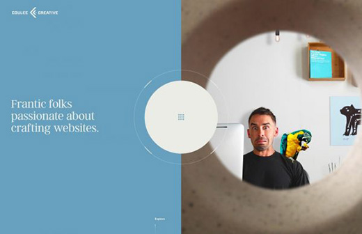 Coulee Creative 的頁面采用了一種有趣的設(shè)計策略。頁面的整體設(shè)計確實沒有改變,但是標(biāo)題文案和圖片中的男人表情會逐步變化。