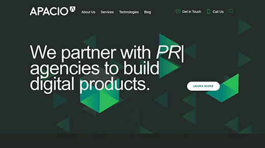 好的設(shè)計(jì)就應(yīng)該緊隨時(shí)代的發(fā)展,這樣才能具有富有時(shí)代感的體驗(yàn),背景紋理設(shè)計(jì)同樣如此。當(dāng)下,最流行的設(shè)計(jì)元素之一就是幾何圖形元素,將幾何圖形融入到背景當(dāng)中,毫無疑問非常具有吸引力,如:Apacio這個網(wǎng)站,它采用深色的背景之上混合色彩鮮艷的幾何圖案,創(chuàng)建出富有深度且抓人眼球的視覺,而文字方面采用了簡約的非襯線體,使得它們可以從黑色和綠色的背景中脫穎而出。