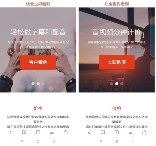 頭圖是訪客進(jìn)入網(wǎng)站后看到的重點(diǎn)信息,所以一定要設(shè)置得簡約吸睛,讓訪客能立刻明白你是做什么的。比如下圖中的字幕網(wǎng)站,使用輪播圖作為網(wǎng)站banner,言簡意賅說明自己的主營業(yè)務(wù),并提供購買通道,而且頭圖背景設(shè)計(jì)得非常美觀、有吸引力,這樣就能夠引起訪客興趣,有利于增加轉(zhuǎn)化。