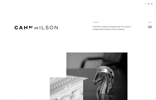 卡恩·威爾遜(Cahn Wilson)的網(wǎng)站很好地展示了缺乏色彩的設(shè)計(jì)美學(xué)。該網(wǎng)站主要展示一些帶有灰度圖像的黑白圖像,干凈、清晰。