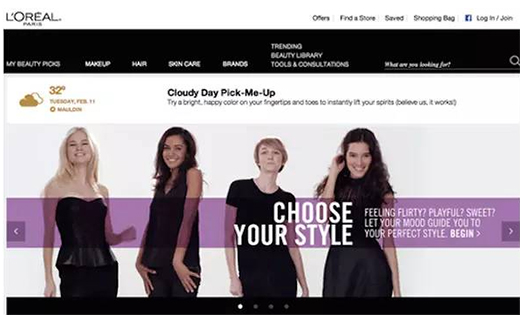 所以,如果你是給女性設(shè)計的,那么紫色是一個不錯的選擇,因為一般來說它是普遍女性喜歡的顏色,但是男性是不喜歡的(當(dāng)然通常情況下是這樣)。在下圖中,對巴黎歐萊雅來說是一個很好的效果 。正如你所看到的那樣,頁眉和頁腳都是黑色的,它表明了地位感和優(yōu)雅感,讓你總體感覺到該產(chǎn)品并不便宜,而是高端產(chǎn)品。