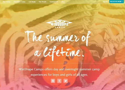 Winshape Camps有著夢幻般歡樂有趣的網(wǎng)頁設(shè)計。主頁包含了一段全屏視頻介紹,也有效地與炫麗的半透明漸變背景融合,成為功能的一部分。