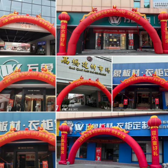 萬象板材、萬象天冠高端衣柜定制,啟動終端門店全方位同步煥新計劃。以“視覺吸睛+體驗(yàn)沉浸”為核心設(shè)計理念,打造層層遞進(jìn)的購買場景:從空間布局到細(xì)節(jié)裝飾,均深度融合活動主題;拱門營造的節(jié)日氛圍滲透門店每個角落,讓客戶在沉浸式體驗(yàn)中,直觀感受萬象品牌的溫度與質(zhì)感。